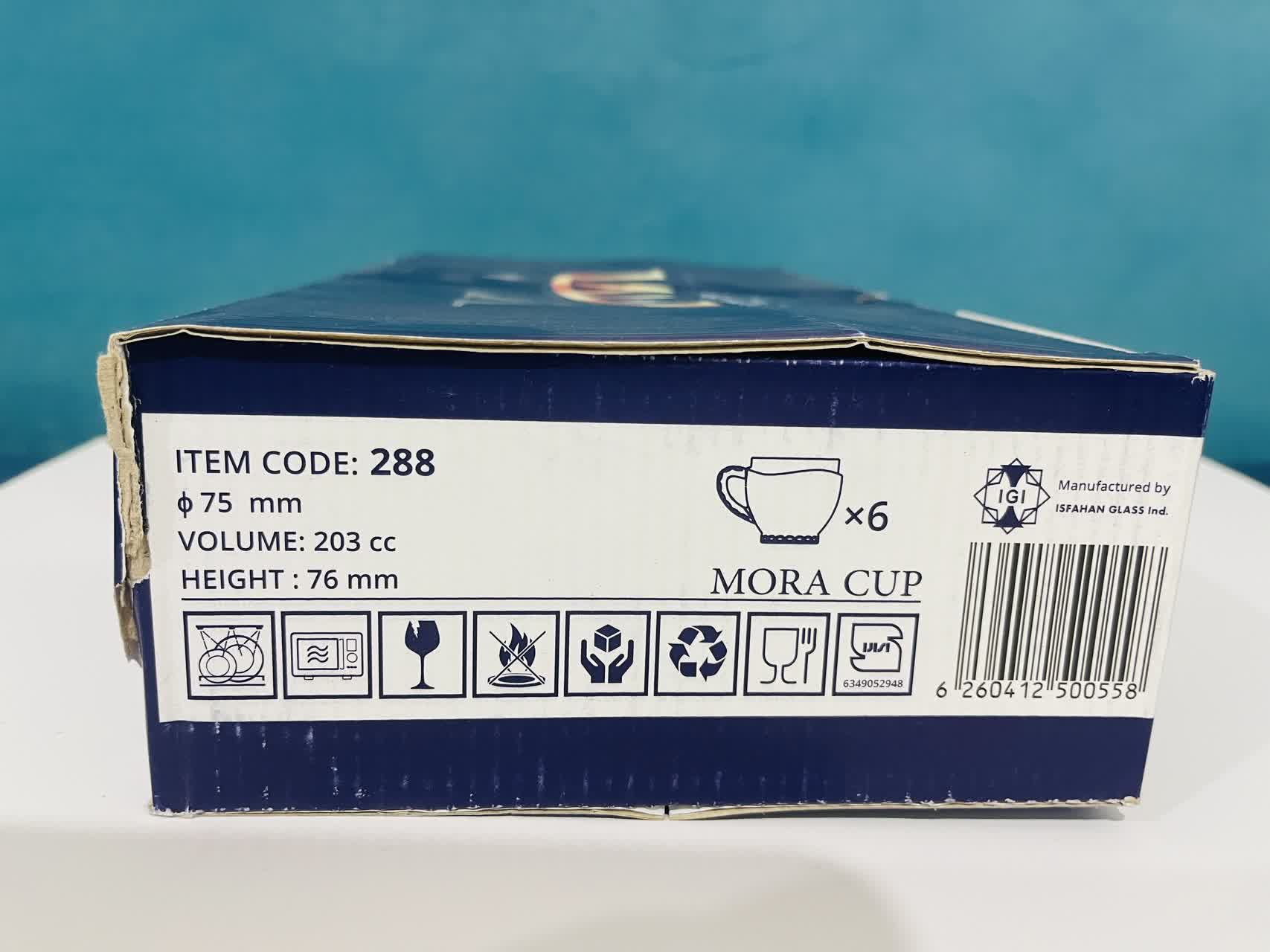 فنجان کوتاه دسته دار طرح دار برند مورا با کیفیت عالی اماده برای نوشیدنی های گرم وترند سال و بلور اصفهان برای فروش تک وعمده.